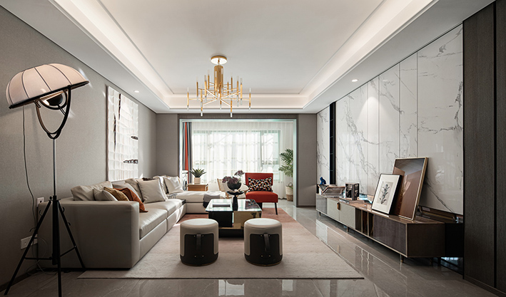 在無主燈設(shè)計(jì)中,墻面燈光一般作為主照明,而是作為裝飾來營造空間感、渲染氛圍。